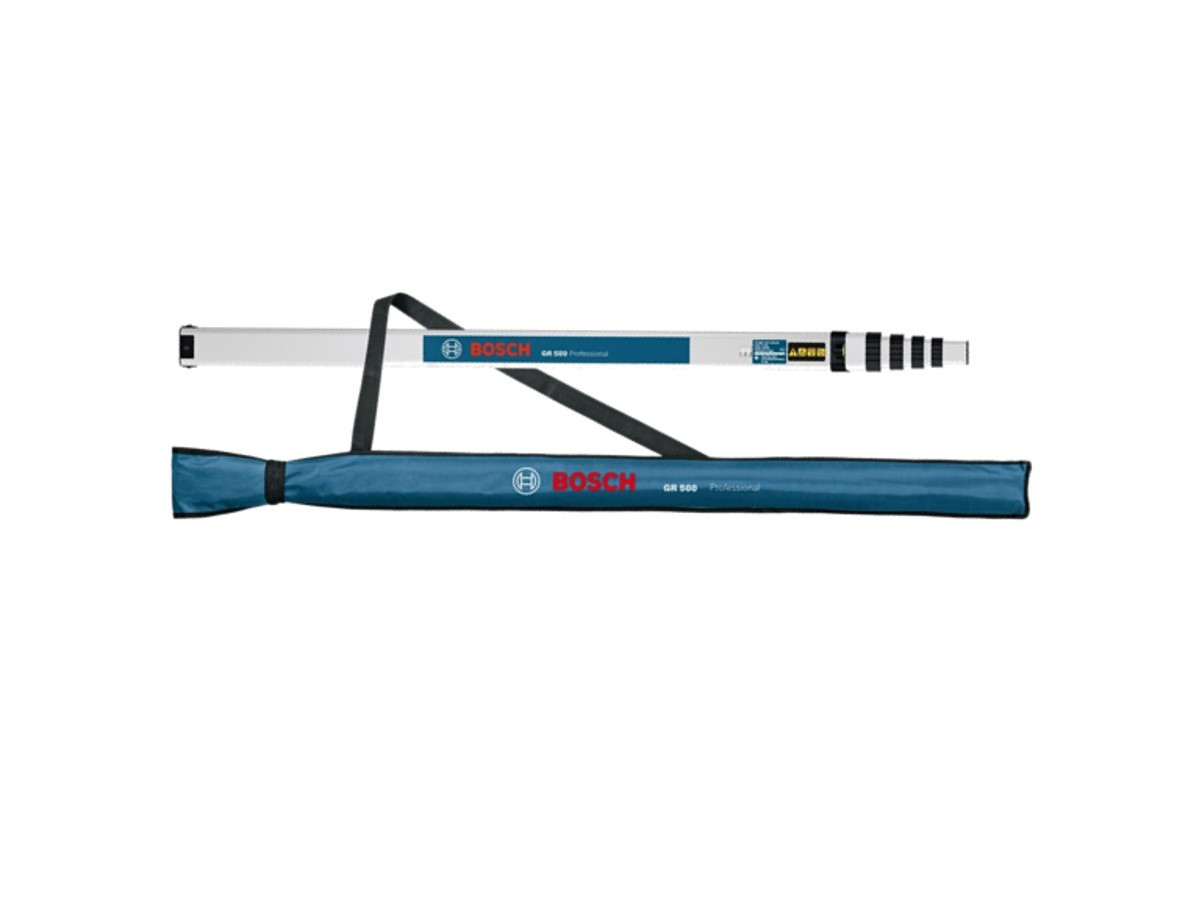 The Bosch GR 500 Levelling Staff is ideal for use with the GOL 26 D Optical Level. With metric dimension and a removable bubble vial for added accuracy, this aluminium staff can extend to up to 5 m. It can also be used with other Laser Levelling tools like the Bosch GLL 2-80 P.