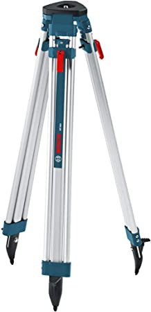 Bosch BT160 Aluminum contractors’ quick clamp tripod for interior and exterior use Extended Height: 63-inches, Closed Height: 38-inches Includes Heavy-Duty Poly Webbing Shoulder Strap. Lightweight Aluminum Design. Electrostatic Powder-Painted Casting – For a durable and long-lasting finish.