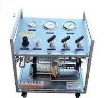 The TEREK GU-GTB-200 is a high-performance gas booster pump designed and manufactured for reliable, high-pressure gas compression. Engineered with a robust structure using aluminum alloy and stainless steel, this pump is capable of handling a wide range of industrial gases, including inert gases like Nitrogen, CO2, Argon, and Helium, as well as flammable and risky gases like Hydrogen, Oxygen, and Natural Gas. This series features a double-driven cylinder, single-stage design with a large 160 mm driven piston for efficient operation.