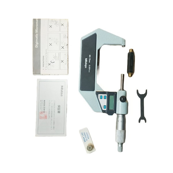 Altools.ng provides mitutoyo 293-523 N Digital Micrometer 50-75mm for sale. The product is in excellent condition and Brand new. Ratchet thimble for improved accuracy when measuring. This item is in the category of "measuring & Layout tools, metal working, manufacturing Technical Details/ Specifications BRAND: MITUTOYO TYPE: DIGITAL MICROMETER INSTRUMENT ERROR: ±(L/75) MEASURING RANGE: 50-75MM MEASURING FORCE: 6-10N MEASURING FACE: CARBIDE TIP RESOLUTION: 00005'' (0.001MM) COMMON SPECIFICATIONS Data output function: Provided Display: LCD Number Of Digits: 6 and minus (-) sign Operating Temperature: 50°c To 40°c Storage Temperature: -10°c to 60°c Power Source: One silver Oxide Battery (SR44) Battery Life: Approximately: One year under normal operation Accessories: Wrench (For no.20087, data output type) standard bar for Models with measuring ranges 25-50mm or bigger Output cable not provided Digimatic micrometer series No. 293 GUIDE FOR MEASURING ORIGIN VALUE: For 50-75mm =50,000 NOTE 1: The display Value does not change while the "P" is blinking NOTE 2 If you pressed (ORIGIN) during measurement by mistake = Click on ZERO {ABS} to restore the previous state NOTE 3 The ORIGIN Value will be changed to the value specified by presetting. To restore the origin value, remove the battery from the micrometer and set it again A.B.S: Absolute Measurement Mode INC: Incremental (companism) measurement mode interference or over speed condition. Click on ( ORIGIN) Return to the ORIGIN point PRESSETING STATUS AUTO SLEEP: Power goes down and display turns off in about 20 minutes after the last operation. Turn the thimble or CLICK on the (ZERO/ABS) Button to restore the status immediately.