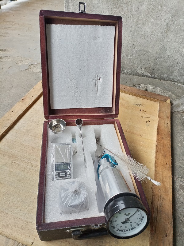 The gauge on the instrument is calibrated to interpret the pressure as percentage of moisture in the sample on the wet weight basis.