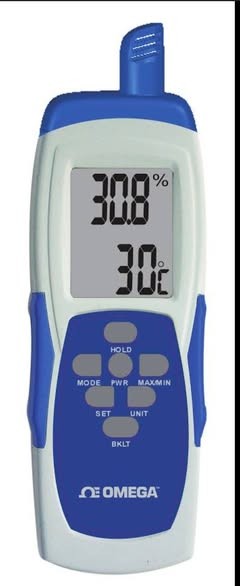 The Omega THDP-10-DL is a handheld, battery-powered (3 AAA) device designed to measure ambient temperature (