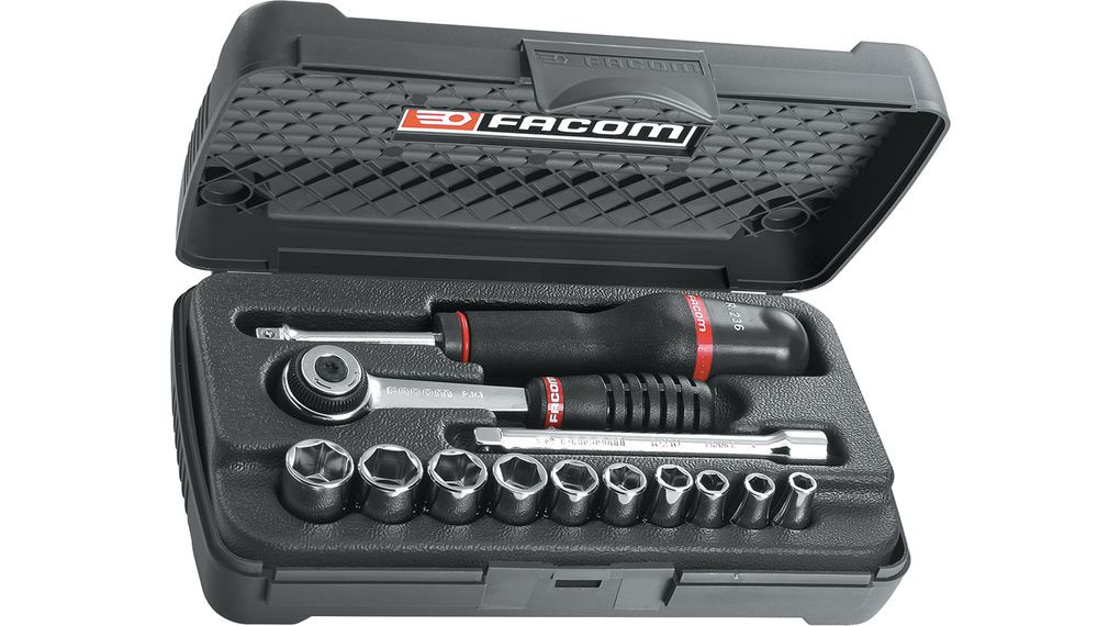 Facom Tools 1/4'' Square Drive Inch 6Pt Socket Set + R.151 Ratchet + Case - R.418AU