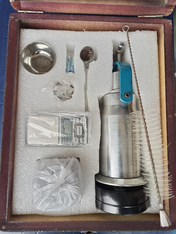The instrument is portable and can be used for quick determination of moisture content (within a few minute) of materials in powder form viz. soi, sand, coal, pottery chips and other finely divided material.