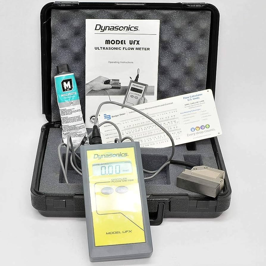 The Dynasonics UFX ultrasonic flow meter is a handheld doppler flow meter. The Dynasonics UFX ultrasonic flow meter utilizes advanced ultrasonic technology, providing accurate and reliable flow velocity assessments in closed piping systems of 1/4" (6 mm) and higher.